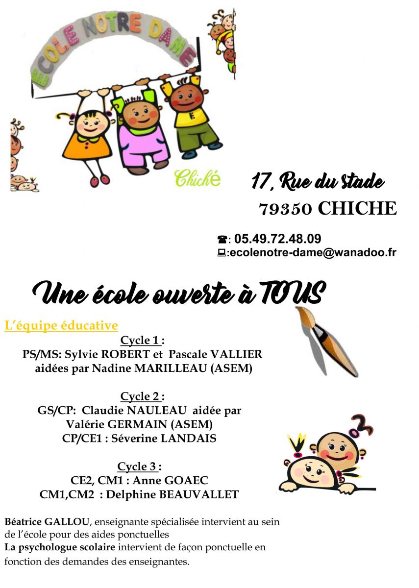 Lien du site de l'école Notre Dame de chiché : http://notredamechiche.toutemonecole.fr